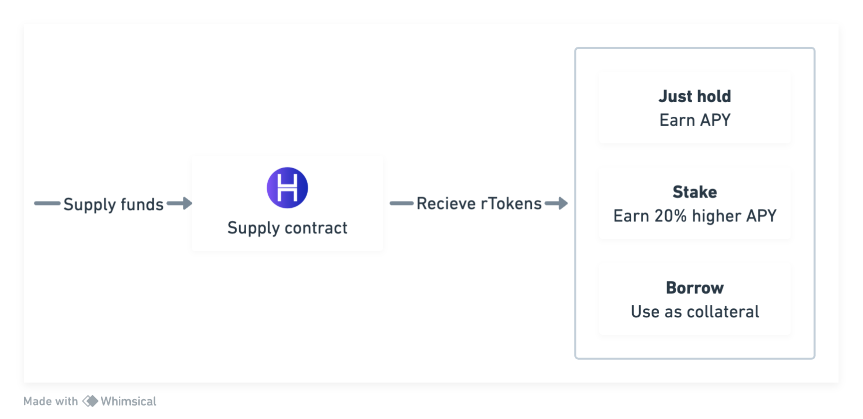 1. **User:** Technically, a user can usually perform 3 main actions with supplier contract: Deposit, Withdraw & Transfer. User can further use the received rTokens as collateral to borrow or stake to earn higher yield.