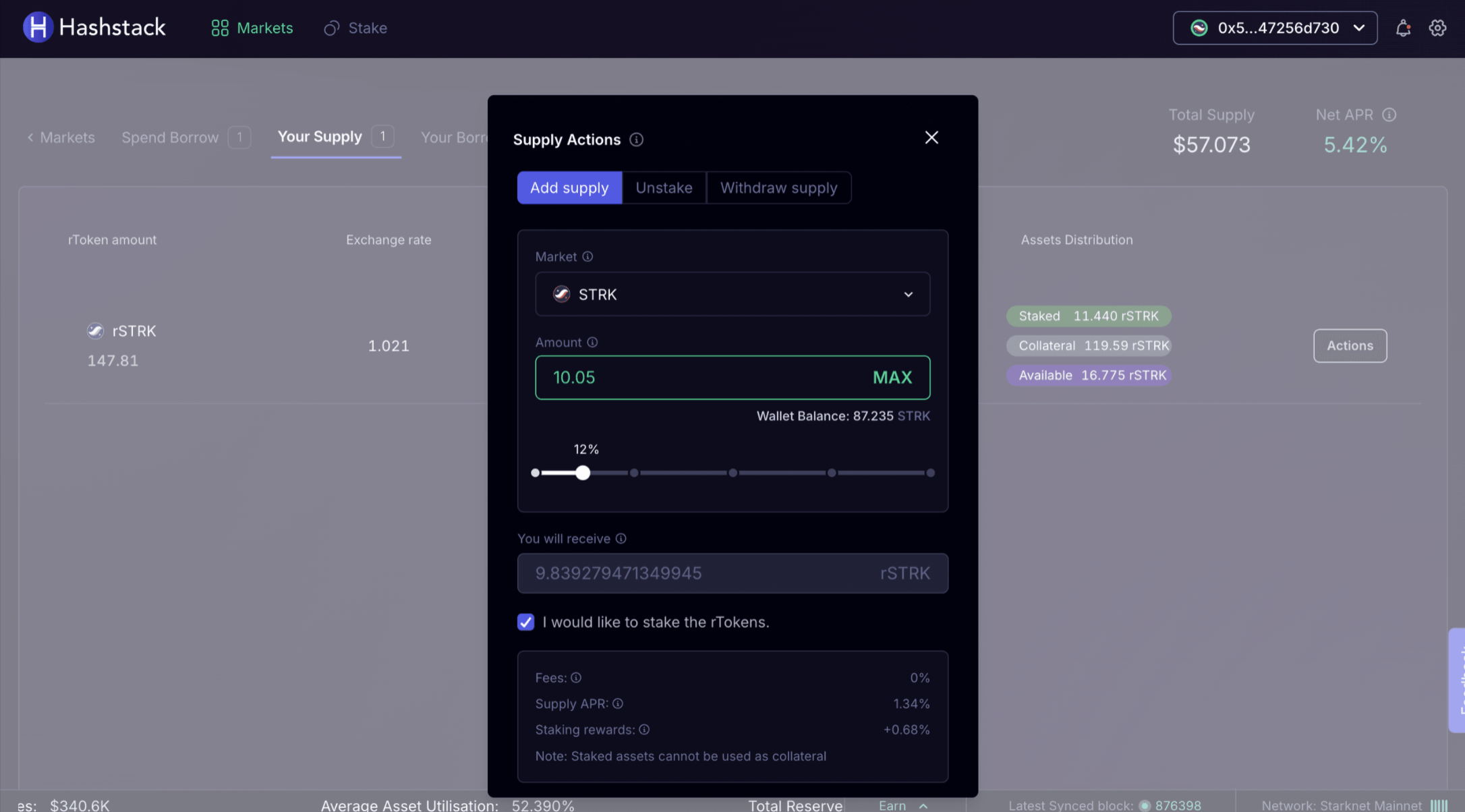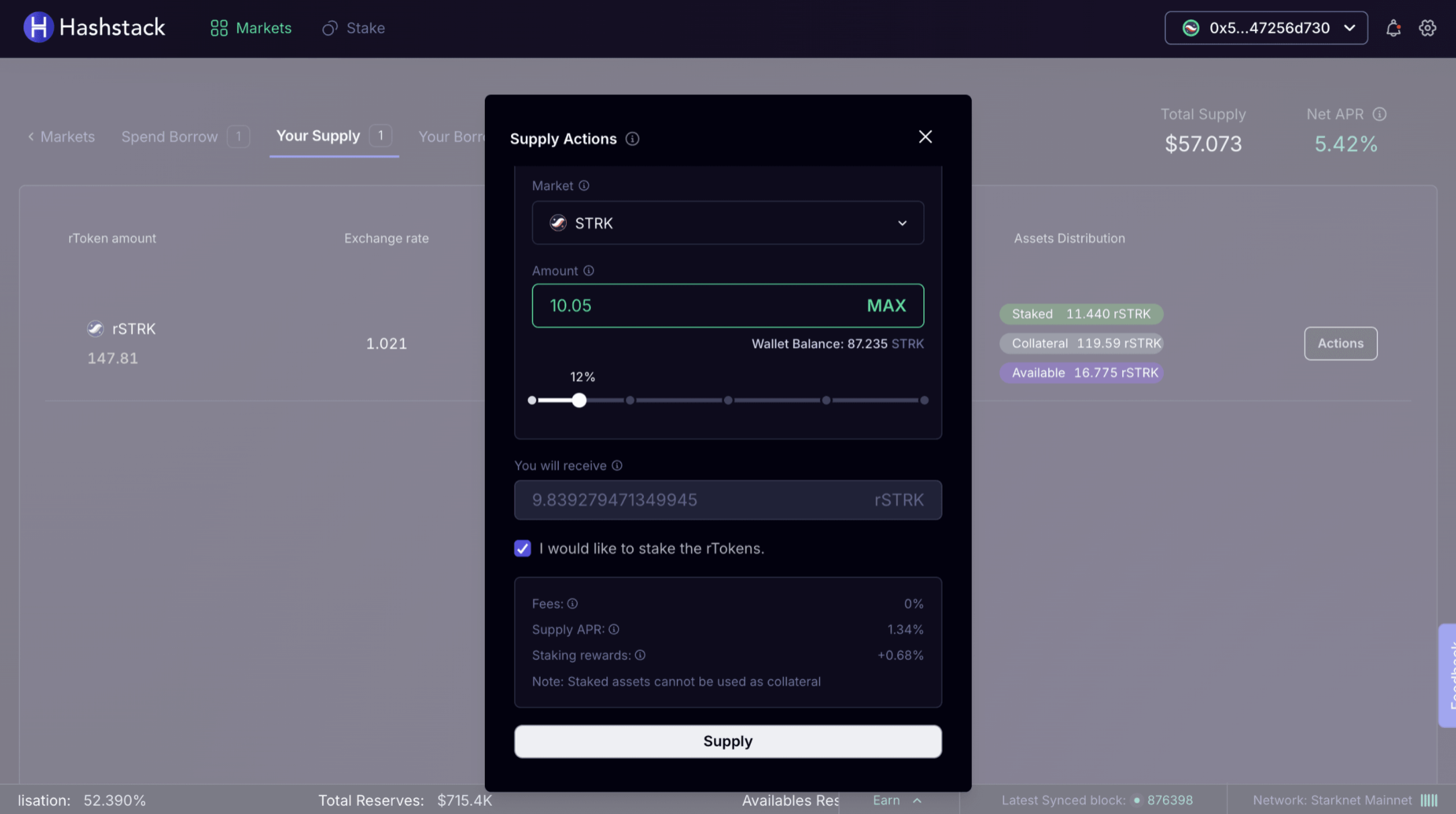 Confirm the transaction in your Starknet wallet.