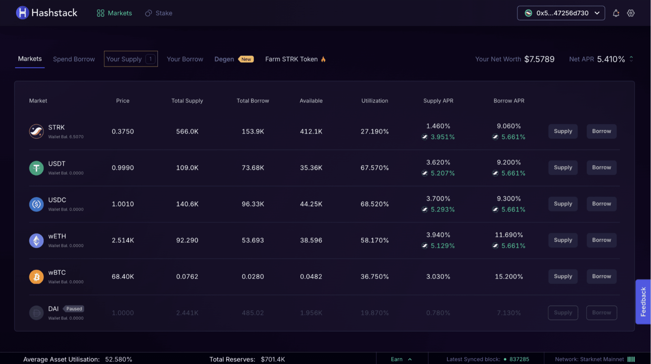 Choose the token and enter the supply amount. Now, scroll down and click on the "Supply" button to proceed.